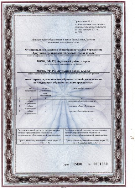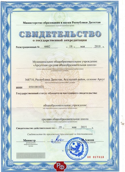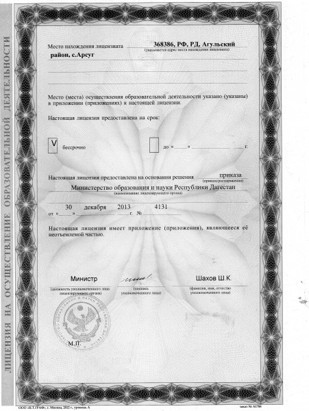 | Адрес местонахождения образовательной организации* | 368386,с.РД,Агульский район,с.Арсуг |